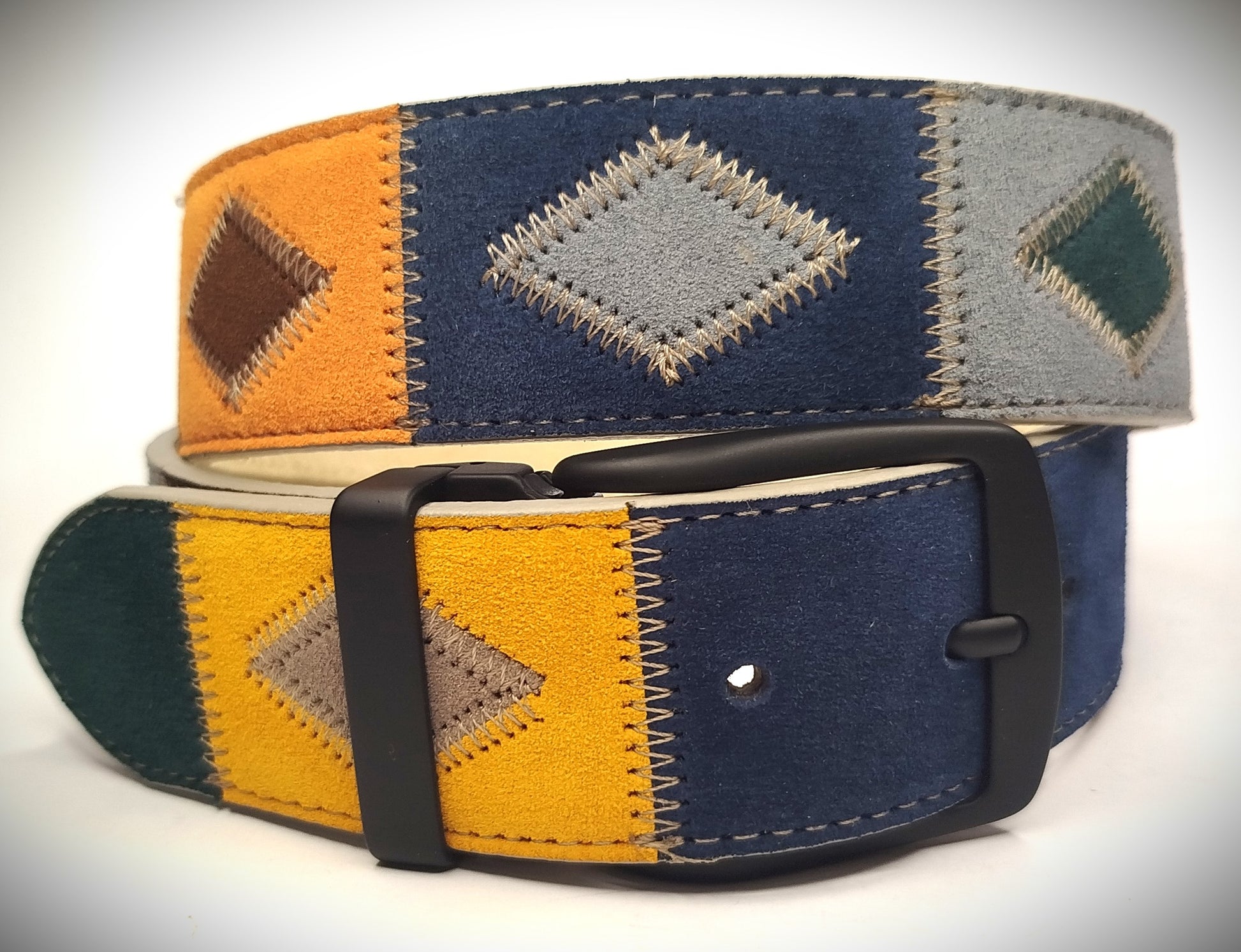 CINTURA PATCHWORK IN VERA PELLE NABUK MODELLO LAMPEDusa 4 cm